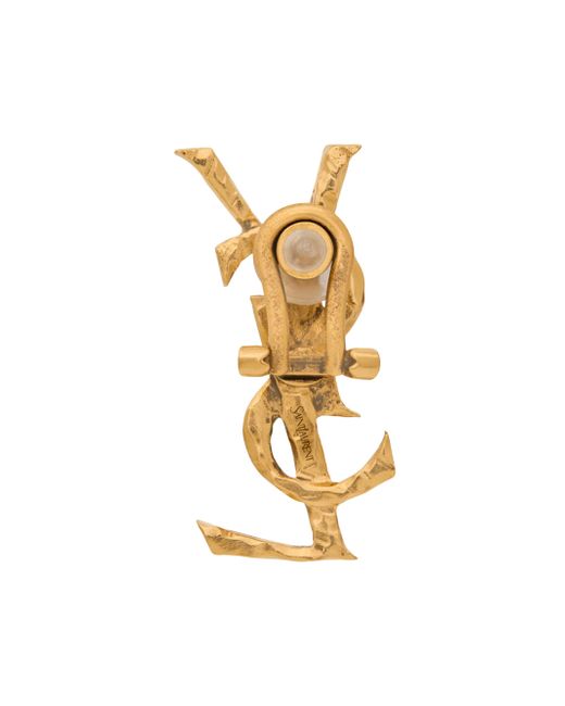 Hammered cassandre single earring. Clip-on closure Saint Laurent engraving Length: 4 cm / 1.6'' x Width: 2 cm / 0.8'' 100% Brass Imported. Lsd Handbags - Saint Laurent > Saint Laurent > Saks Fifth Avenue > Barneys. Saint Laurent. Color: Brass Gold.