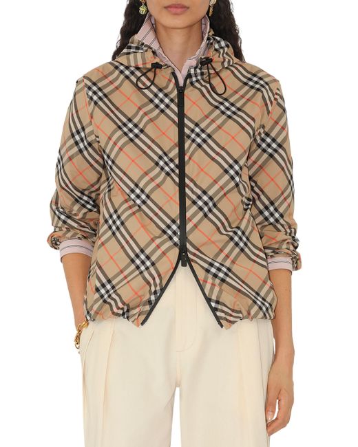 This lightweight jacket is patterned with the Burberry check, cut to a regular fit. The hooded design is appliquéd with the knight stamp, an archival motif first seen on the brand's shopping bags in the 1980s. Hood Long sleeves Zip-front closure 100% polyester Dry clean Imported SIZE & FIT Model measurements: 5'10" tall Model is wearing a US size Small ABOUT THE BRAND Founded in 1856 by 21-year-old Thomas Burberry, the brand set out with a mission to stylishly protect against British weather-and Burberry's iconic trench coat was born. In the 1920s, its renowned check pattern was introduced as the coat's lining. Today, under Creative Director Daniel Lee, the heritage brand continues to evolve and create timelessly classic men's, women's and kids' pieces, along with beauty. Advanced Designer - Burberry > Burberry > Saks Fifth Avenue > Barneys. Burberry. Color: Sand Ip Check. Size: Large.