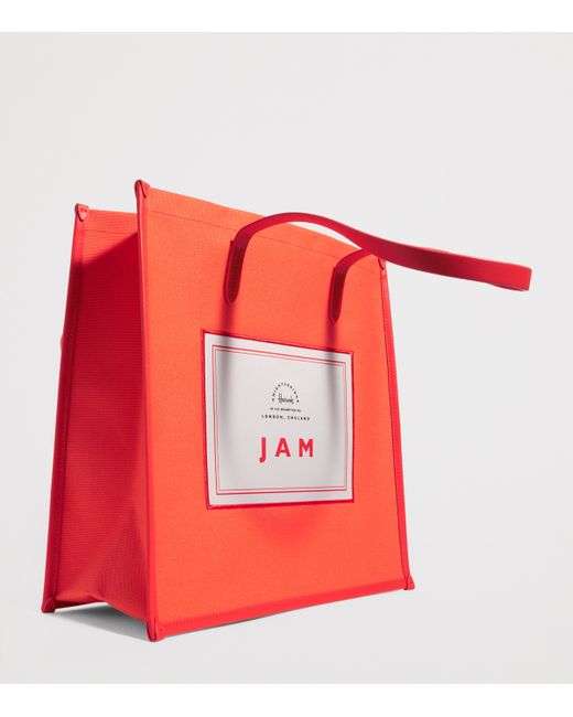 An homage to the mouthwatering delights that line the shelves of the Harrods Food Halls, the Condiment shopper bag is sure to satiate your hunger for a sturdy and reliable companion for grocery store trips. The cotton canvas outer is embroidered with a Jam patch - modelled after our instantly recognisable packaging - and opens to reveal a capacious interior for all your goods.