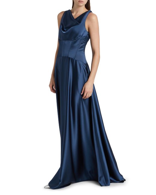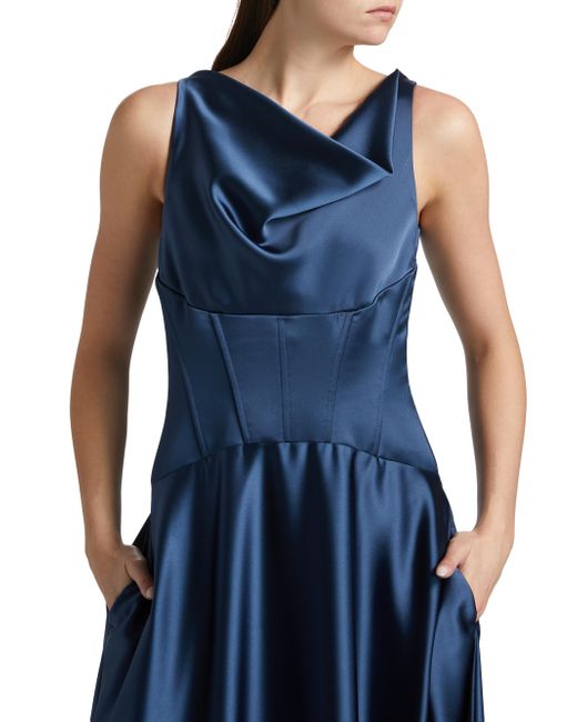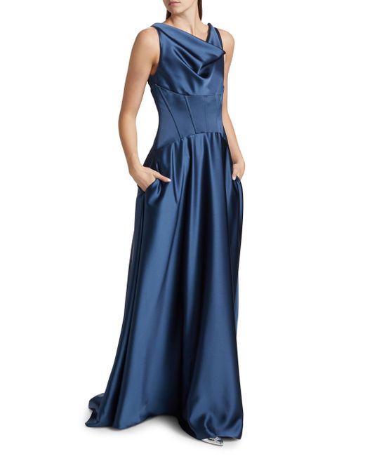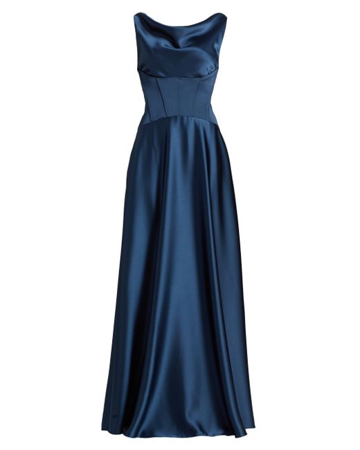 Cut in a drop-waist silhouette, this sleeveless gown from Amsale is cut in a drop-waist silhouette flaunting a fluid-like satin design. Cowl neck Sleeveless Side seam pockets Back zip closure 100% polyester Dry clean Imported SIZE & FIT Model measurements: 5'10" tall Model is wearing a US size 4. Dress Collections - Modern Evening > Amsale > Saks Fifth Avenue > Barneys. Amsale. Color: French Blue. Size: 0.