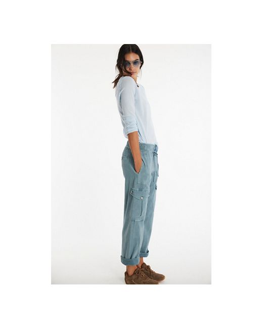 A cool new take on a forever classic, these cargo-inspired pants are featured in a high-rise, fitted style with staple pocket detailing for a utility-inspired touch. **Fit:** Fitted, high-rise style **Features:** Elasticated drawstring waistband, slight flare at bottom, slim fit throughout, defined pocket detailing, soft cotton fabrication **Why We ❤ It:** The ideal pair to dress up with a heel for a night out or keep casual with a sandal for your daytime thing. We The Free Park Ave Pants at Free People in Autumn Sky, Size: XS