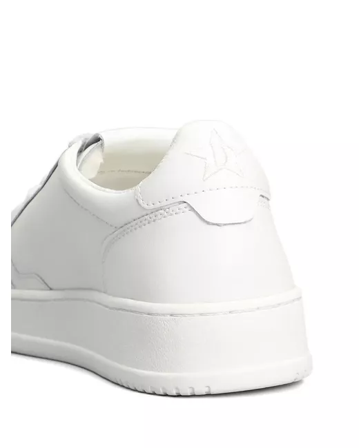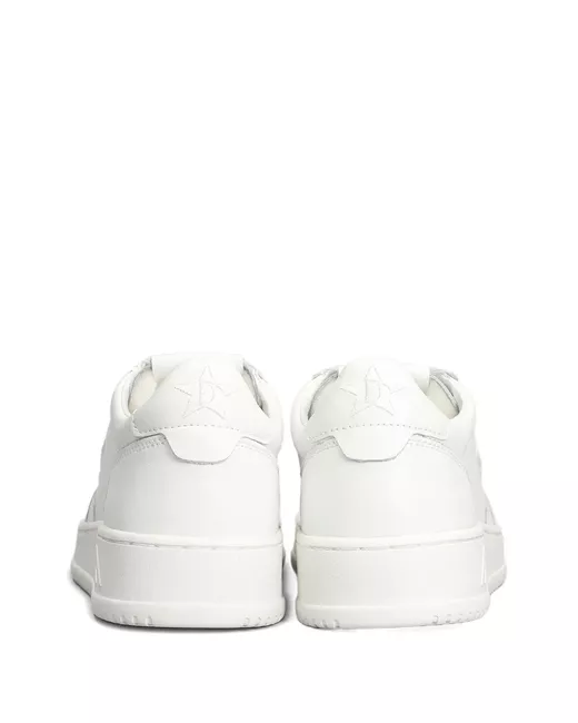 white front lace-up fastening branded heel counter logo patch to the side perforated toebox