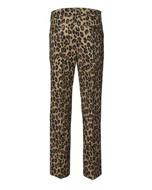 beige concealed fly and button fastening belt loops two side slash pockets two rear button-fastening jetted pockets
