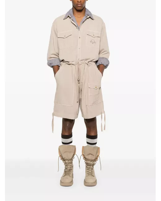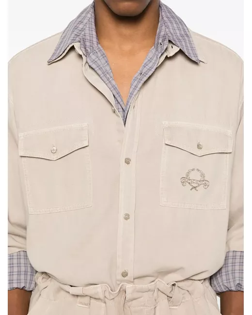 light beige front button fastening two button-fastening chest pockets crest motif classic collar