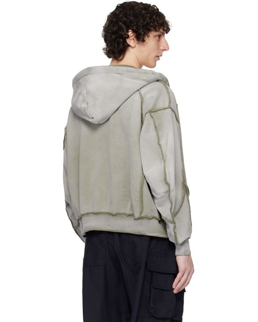 French terry hoodie. Exposed seams and fading throughout. · Paneled construction · Drawstring at hood · Zip closure · Logo graphic printed at chest · Raglan sleeves · Contrast stitching in khaki Supplier color: Grey
