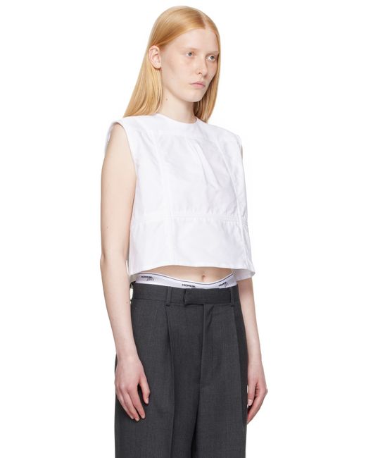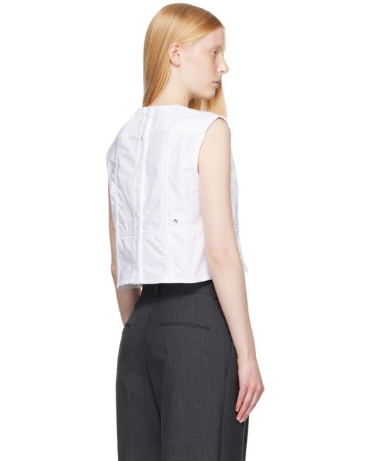 Cotton oxford cloth top. · Paneled construction · Round neck · Box pleat at front yoke · Button closure at back · Logo embroidered Supplier color: White oxford