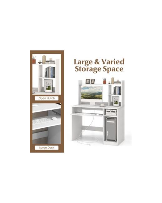 This 2-in-1 computer desk features a spacious desktop and open hutch for maximized storage and workspace. With sturdy construction supporting 210 lbs, it includes a keyboard tray and Cpu stand. Its sleek white design fits any room, perfect for work, study, or gaming, making it a stylish and practical choice.