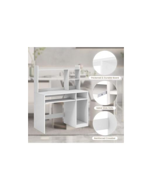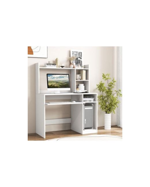 White Home Office Computer Desk with Bookcase Keyboard Tray and Cpu Stand