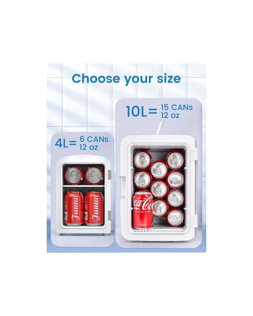 This multi - purpose mini fridge features a removable shelf and top handle for easy portability. With a 10L capacity (storing 15 cans), it comes with a lock design. Measuring 9.8"D x 12.8"W x 13.9"H, it supports 100 - 120V home and 12V car power. In about 3 hours, it cools from 86°F (30°C) to 40°F (4°C). Its semiconductor refrigeration is eco - friendly and Etl - certified. Ideal for various settings, it also makes a great gift.