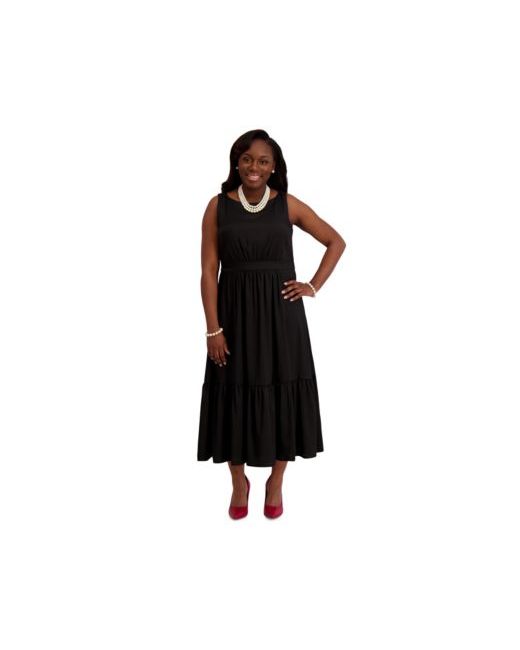 Women's Black Tiered Midi Dress Regular Plus Sizes