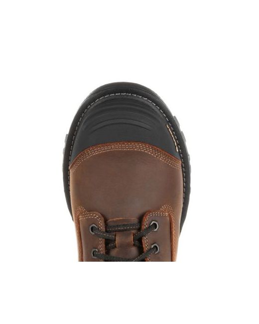 The Georgia Boot Rumbler composite toe waterproof work boot will help you fight through all the bumps in the road. The upper on this 6 inch work boot is constructed from full-grain leather and features combination eyelet or hook hardware and an external Tpu toe cap for added abrasion resistance and durability. The tongue and collar are padded for extra comfort. The removable leather Comfort Cover prevents pinch points while providing protection. The inside of this composite toe work boot in lined in with high performance mesh and is equipped with our guaranteed Georgia Waterproof System. Your feet will not only stay dry, but feel the ultimate comfort provided by the Amp Lt memory foam insole. The composite toe cap is Ergo-Fit which means shaped to match the contours of your foot, allowing more wiggle room for your toes. It meets the standards for Astm F2413 protective toe classification. Additionally this boot meets the Astm F2413 classification for electrical hazard footwear.