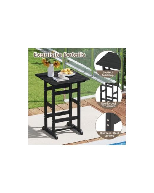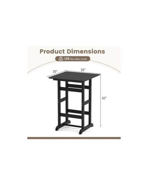 Constructed from premium Hdpe with stainless steel hardware, this 42″ bar table is waterproof, sunproof and fade resistant. Its 30″ square slatted top blends modern elegance with easy upkeep, making it perfect for year round outdoor entertaining.