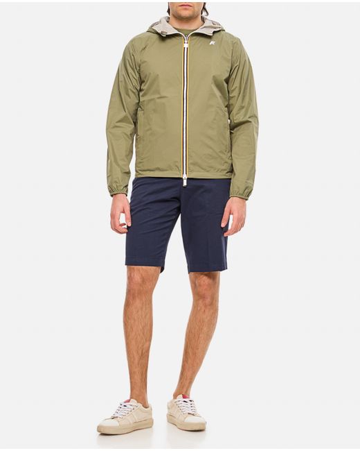 Double-face k-way jacket Front zip fastener Logo patch Colour: green and beige
