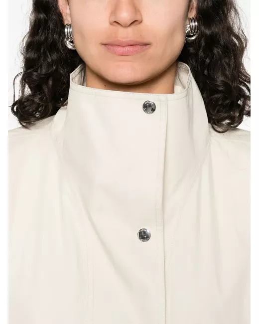 ecru front press-stud fastening two front patch pockets high neck straight hem
