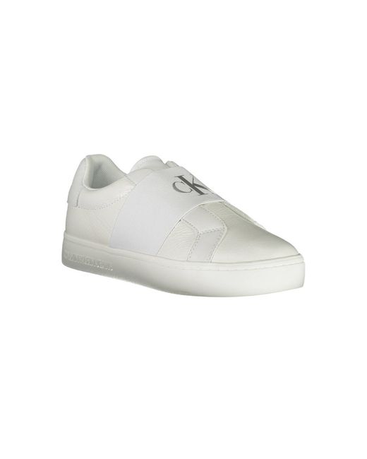 Step out in style and make a statement with these Calvin Klein sneakers. Merging fashion-forward design with ultimate comfort, these sneakers feature a bold elastic band detailing that boasts the Calvin Klein logo for a touch of luxe. Crafted from a premium blend of materials, this pair promises durability and a chic aesthetic, perfect for the modern trendsetter. The crisp white hue ensures they pair effortlessly with any ensemble, from casual to sporty chic. Material: 40% Polyester, 30% Leather, 30% Polyethylene Country of origin: CN Color: White