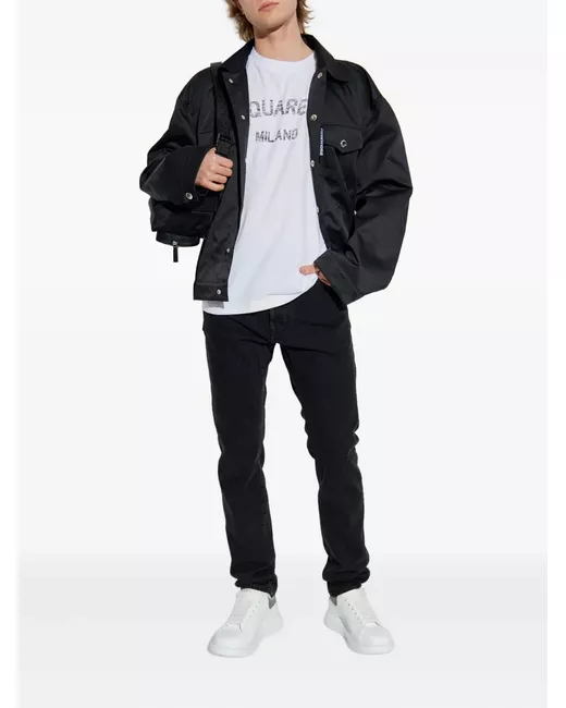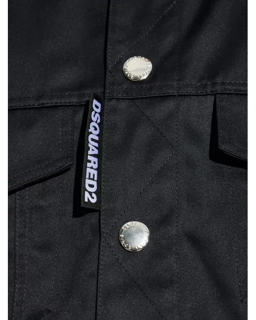 black front press-stud fastening two chest flap pockets two side slit pockets classic collar