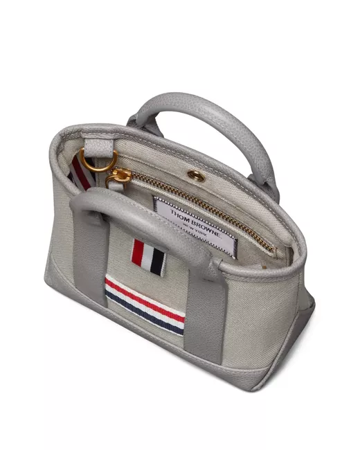 light grey concealed press-stud fastening two rolled top handles adjustable detachable shoulder strap This piece comes complete with a protective dust bag.