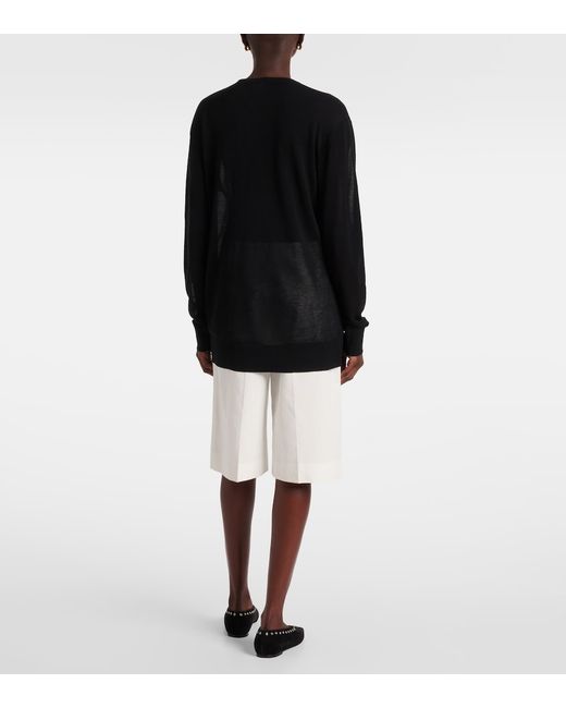 Material: 88% lyocell, 10% cashmere, 2% polyamide. Care instructions: hand wash. Made in China. Designer color name: Black. Item color: black. Hem: ribbed.