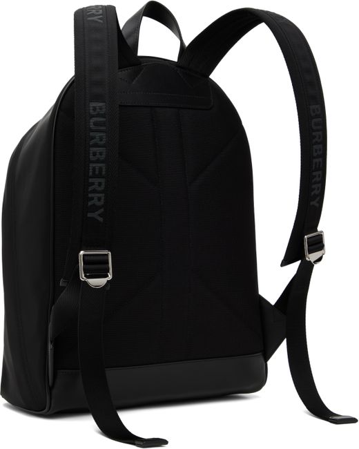 Nylon taffeta backpack in black. · Buffed leather trim throughout · Fixed carry handle · Adjustable padded shoulder straps · Zip pocket at face and side · Logo bonded at face · Padded mesh panel at back face · Two-way zip closure · Laptop compartment at interior · Ripstop lining · H16.5 x W11.5 x D8 Supplier color: Black