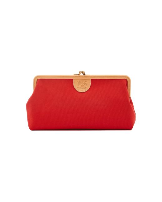 From the Manuela Collection. II Bisonte's Classic canvas clutch showcases an iconic retro-inspired kiss lock snap closure, vegetable-tanned leather trim, and interior open pocket. Made with responsibly tanned leather Kiss lock closure Interior open pocket Goldtone hardware Authenticity card included Dustbag included 100% cotton Trim: Leather Made in Italy SIZE Weight: about 0.5lbs About, 10.25"L x 5.5"H x 2.75"D. Handbags - Collection Handbags > Il Bisonte > Saks Fifth Avenue > Barneys. Il Bisonte. Color: Red Gold.