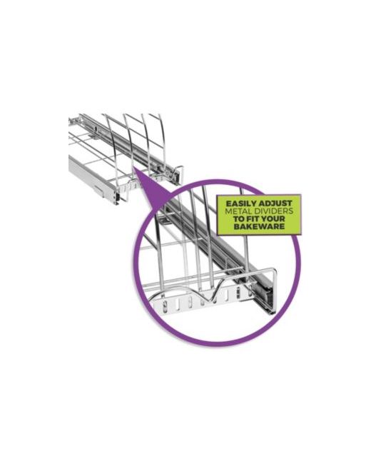 Revitalize your kitchen with the Hold N' Storage Pull Out Organizer, designed to improve access to your baking essentials. Featuring a smooth sliding system, it extends effortlessly, providing easy reach for cookie sheets, cutting boards, and bakeware, eliminating the need to search through cluttered cabinets. The organizer optimizes space with its efficient design and is quick to install in under 30 minutes using the included hardware and instructions, fitting cabinet openings 9.75 inches and larger. Made from durable heavy wire with a bottom stabilizer bar for added support, it ensures smooth operation. Measuring 8.5” W x 21” D x 11” H, it s compatible with most kitchens and is backed by a lifetime limited warranty, offering a practical and reliable storage solution.