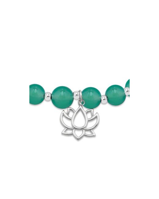 Macy's stretch bracelet is created with 8mm beads, which is said to be a serene healing stone. With a lotus charm alternate 3mm Silver Plate Beads, it is perfect for stacking or wearing alone. Created for Macy's.