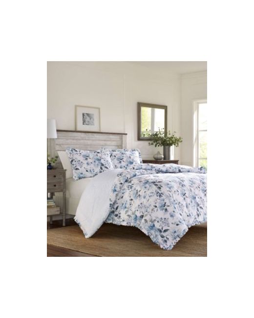 Garden inspiration brings natural beauty to any space, making Laura Ashley's floral designs a perfect decorating choice. This beautiful blue and white watercolor print gives the classic garden floral a modern update with its relaxed painterly style and sophisticated grey accents. The ruffled comforter and shams are printed on a crisp white cotton pique weave, offering added textural interest and distinctive style. Embroidered and ruffled decorative accent pillows and coordinating ruffled European shams allow you to create a luxurious bedroom with a decorator's touch.
