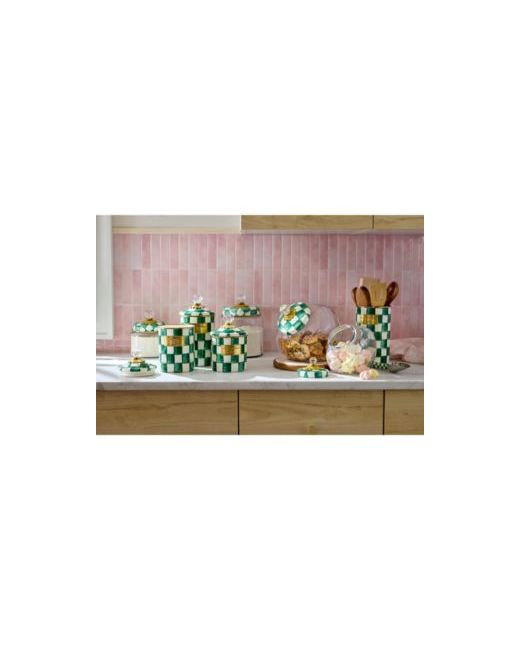 Keep countertops tidy in MacKenzie-Childs style with the Emerald Check Large Kitchen Canister. With its hand-painted enamel lid covered in fresh green checks, who could blame you for wanting to overhaul the whole pantry?