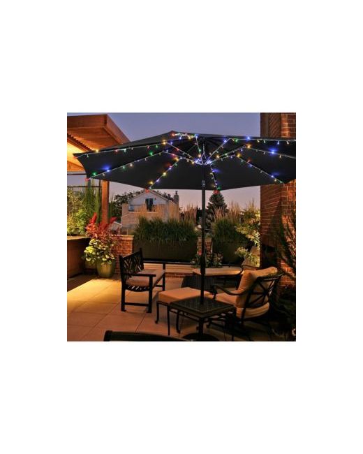 Specifications:- String Light Length: 4 3/4 ft (144.5 cm)- Solar Panel Size(LxW): 3 3/8" x 2 3/16" (8.5 x 5.5 cm)- Fit Patio Umbrella Size: 7.5 ft, 8 ft, 9 ft, 10 ft- Number of Led Bead: 128 pcs- Led Lifespan: 20,000 hrs- Charging Time: 6 to 8 hours- Remote Control Battery Type: CR2025 Battery- Material: Hips, Abs- Net Weight: 0.66 Lb (0.3 kg). Package Contents:- 1x Solar String Light- 1x Remote Control- 1 Set of Zip Ties- 1x Manual. Notice: - Please note that the string light is cuttable, and the excessive part of the light after cutting won't work anymore. Please measure the length of your umbrella ribs and cut the wire to match the length needed for the ribs.
