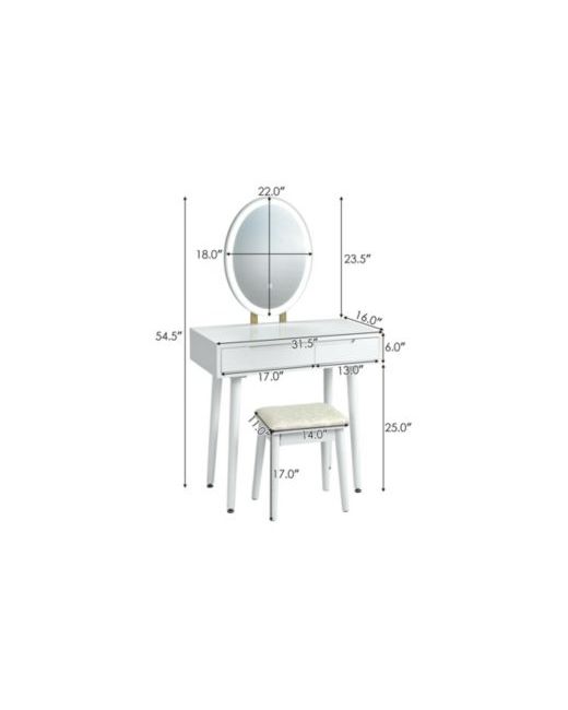 Achieve flawless makeup with this Led vanity set featuring a 3-color dimmable mirror, 2 organized drawers, and a durable rubber wood table. The cushioned stool ensures comfort, while the adjustable legs provide stability. Ideal for daily dressing routines in a modern, minimalist design.