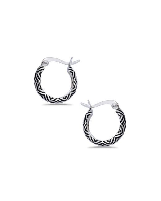 These Macy's hoop earrings with oxidization in a geometric pattern are trendy and easy to wear. A perfect addition to your collection