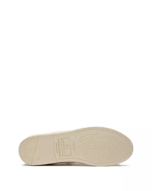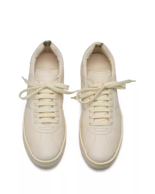 light beige front lace-up fastening flat rubber sole pull-tab at the heel perforated detailing