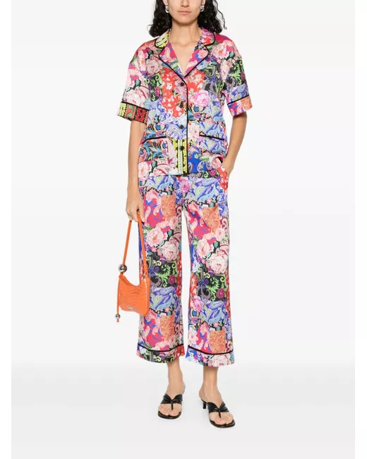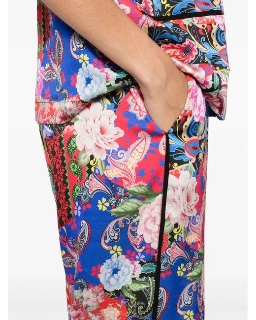 bright red elasticated waistband two side slash pockets paisley print floral print