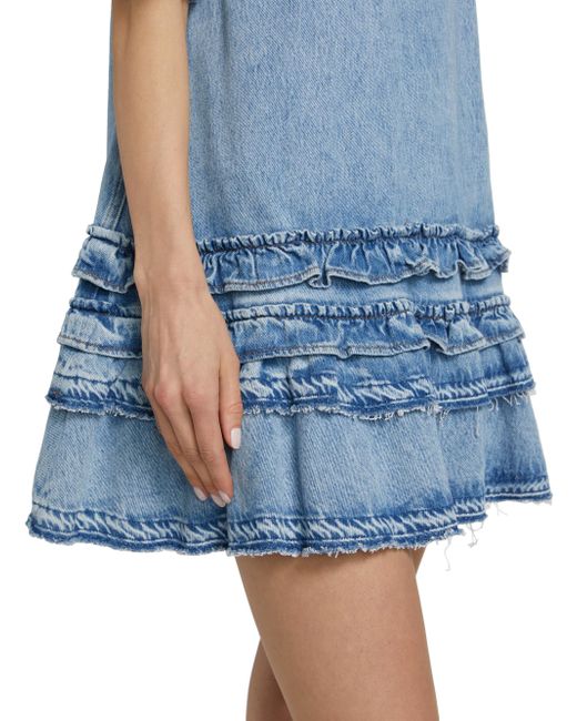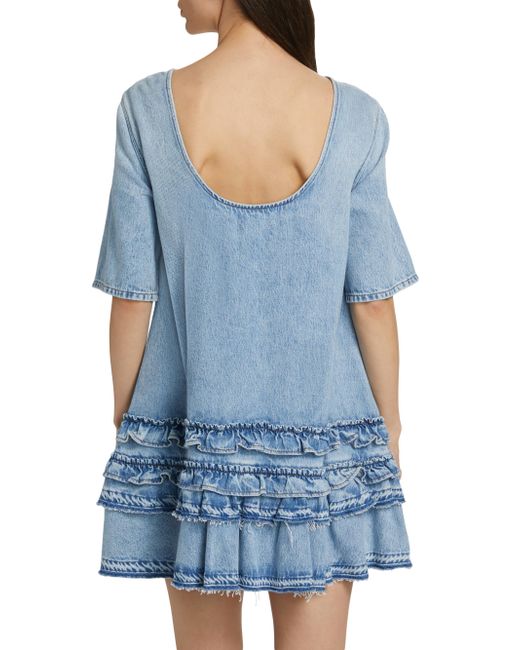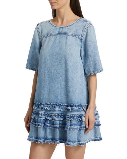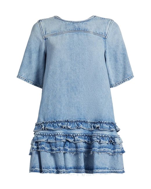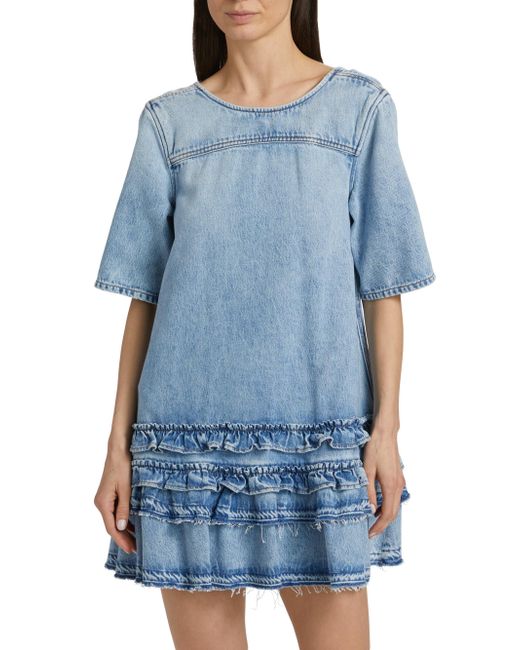 This Ganni denim short-sleeve minidress is styled with frilled detailing at the hem. Made with organic cotton Made with responsibly sourced lyocell Round neck Scoopback Short sleeves Pulls over 60% organic cotton/40% responsibly sourced lyocell Machine wash Imported SIZE & FIT About 33" from shoulder to hem Model measurements: 5'10" tall Model is wearing a US size Small. Contemporary Sportswear - Contemporary Collections > Ganni > Saks Fifth Avenue > Barneys. Ganni. Color: Light Blue Stone. Size: 2.