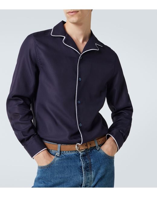 Material: 100% cotton. Care instructions: machine wash at 30 degrees. Made in Italy. Designer color name: Blu. Item color: blue. Contains non-textile parts of animal origin. Collar: one-piece. Closure: buttoned front. Cuff: one button. Side slits. Partially lined. Includes: box. Cotton.