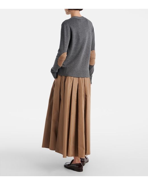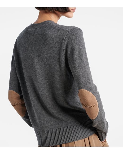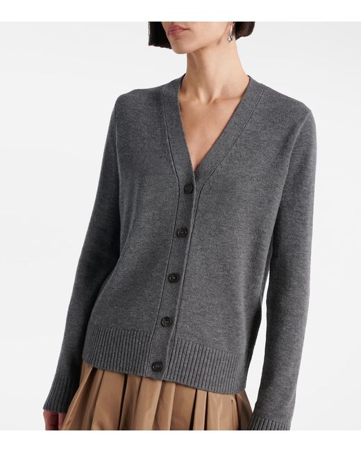 Material: 100% wool. Care instructions: hand wash. Made in China. Designer color name: Grey Melange. Item color: gray. Contains non-textile parts of animal origin. Closure: buttoned front. Collar: V-neck. Elbow patches. Cuff: ribbed. Hem: ribbed. Wool.