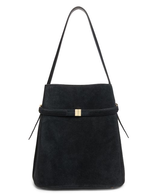 Crafted of suede, this Toteme bucket bag features a cinched belt to create sculptural side folds and a spacious interior. Shoulder strap Dust bag Clasp closure Suede Lining: polyurethane/polyamide Made in Italy SIZE About 11.8"W x 10.6"H x 6"D Shoulder strap: about 9" drop. Handbags - European Collection Hdba > Toteme > Saks Fifth Avenue > Barneys. Toteme. Color: Black.