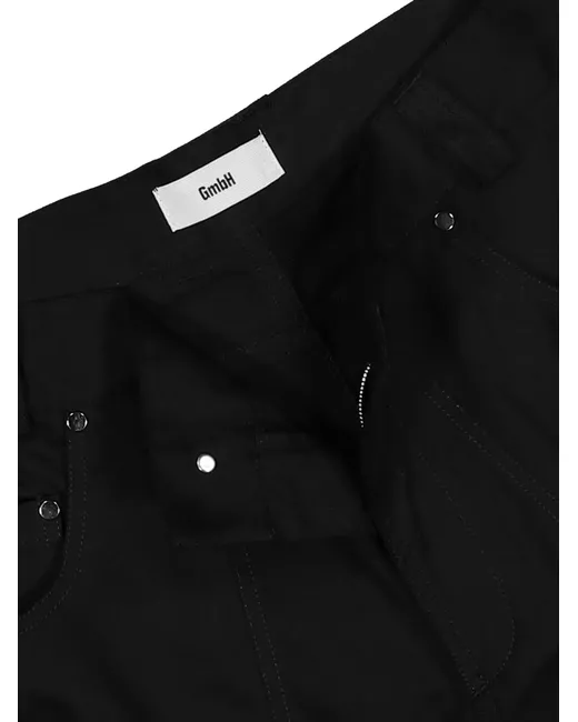 black button fly fastening rivet detailing multiple patch pockets belt loops