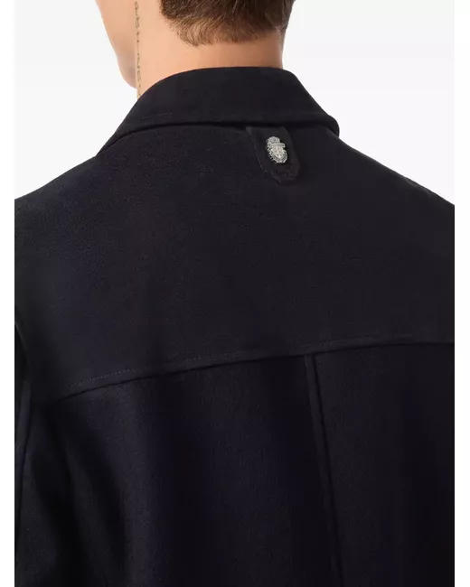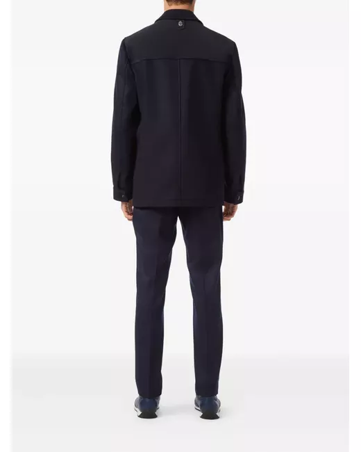 navy blue front zip fastening two front flap pockets straight-point collar long sleeves