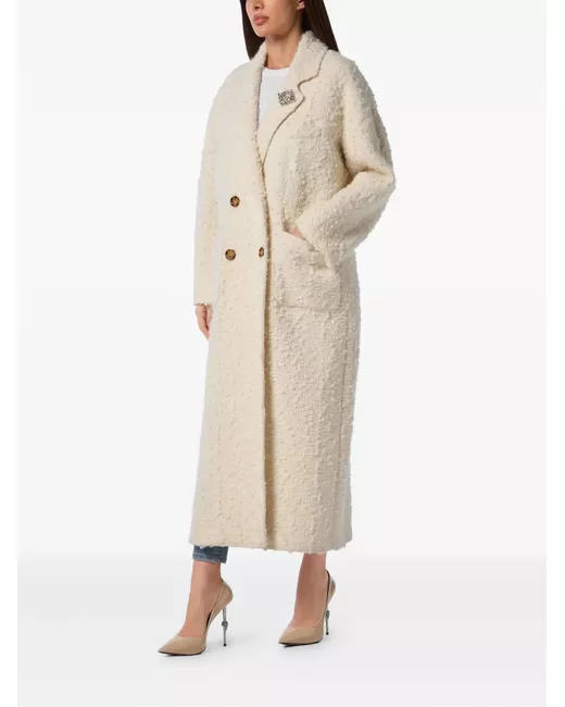 light beige double-breasted button fastening two front patch pockets bouclé construction long sleeves