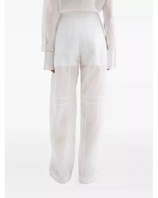 white side button fastening two side slit pockets sheer palazzo design