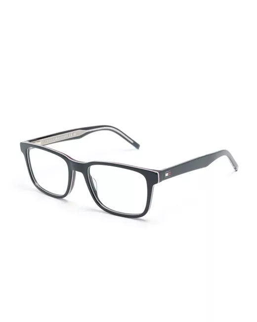 navy blue recycled acetate blend rectangle frame clear lenses logo-engraved arm straight arms with curved tips These glasses come with a protective case. All glasses from FARFETCH are sold as non-prescription frames.
