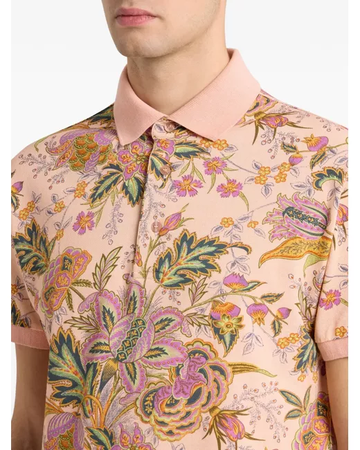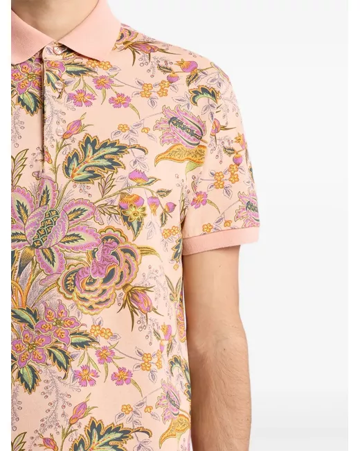 salmon pink front button placket ribbed trim polo collar short sleeves