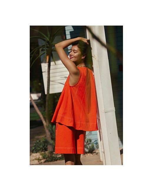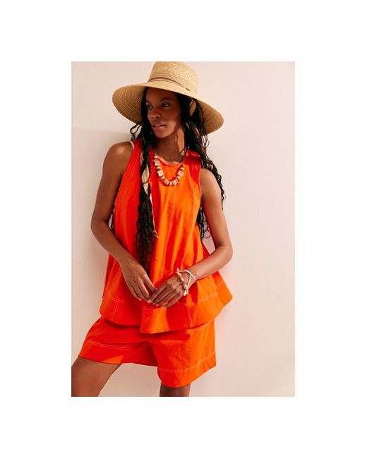 The perfect instant outfit in two simple steps, this wear-everywhere look from our free-est collection is the definition of effortless. **Fit:** Top: Relaxed, longline fit; Shorts: Loose fit throughout **Features:** Top: High neckline, dropped armholes, contrast popstitch seaming; Shorts: Pull-on design, side pockets, coordinating stitching **Why We ❤ It:** Off-duty with beachy sandals or bold with tall boots, this set has endless ways to wear. Strada Co-Ord Set by free-est at Free People in Tangerine Tango, Size: XS
