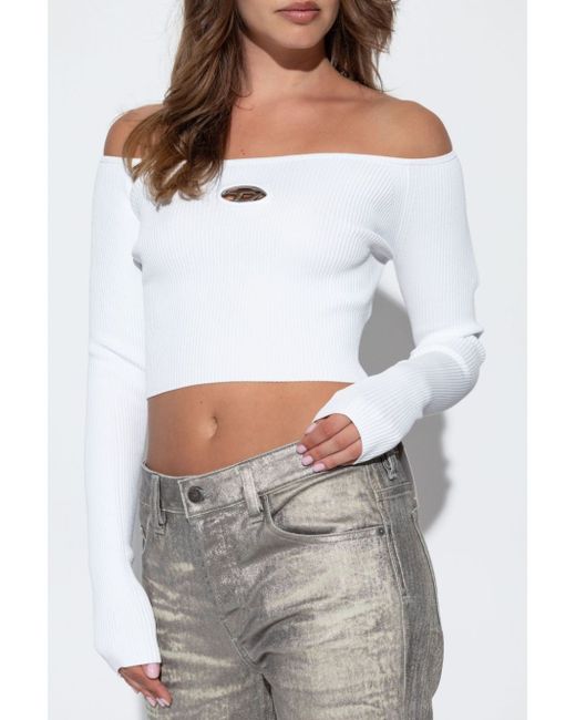 white knitted construction ribbed knit Oval D logo plaque boat neck long sleeves cropped straight hem