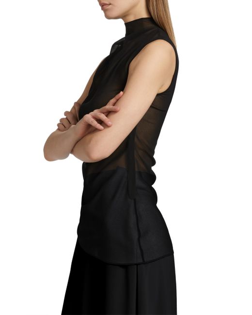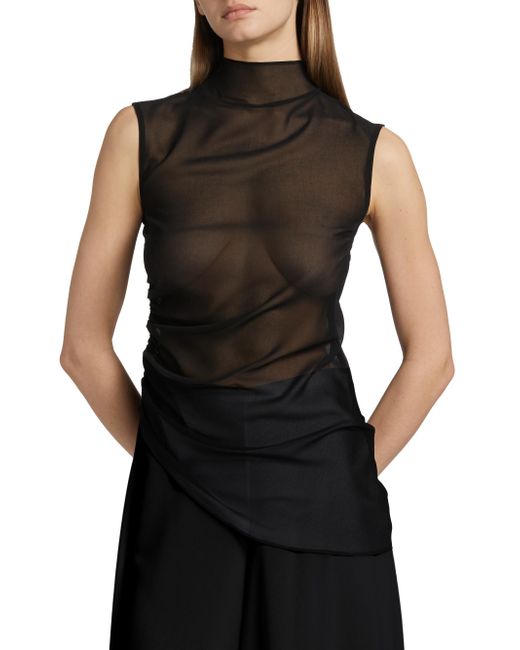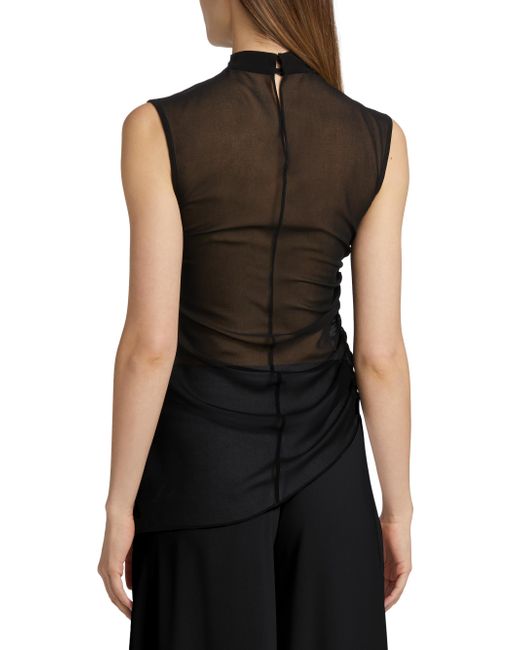 This top from LaPointe is crafted of sheer georgette, featuring a mock turtleneck, ruched detailing, and an asymmetric hem. Mock turtleneck Sleeveless Asymmetric hem Concealed side-zip closure 100% polyester Dry clean Made in USA SIZE & FIT Model measurements: 5'10" tall Model is wearing a US size 4. Designer Lifestyle - Designer Lifestyle Sport > Lapointe > Saks Fifth Avenue > Barneys. LaPointe. Color: Black. Size: 4.