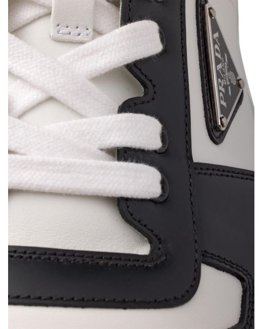 Metal eyelets and cotton laces Enamel triangle on the upper Prada Milano logo printed on the tongue Lightweight box sole with embossed logo on the side 35 mm sole Removable leather-covered insole Imported 100% Calf Leather. Lsd Rtw - Prada Rtw > Prada > Saks Fifth Avenue > Barneys. Prada. Color: White. Size: 9.