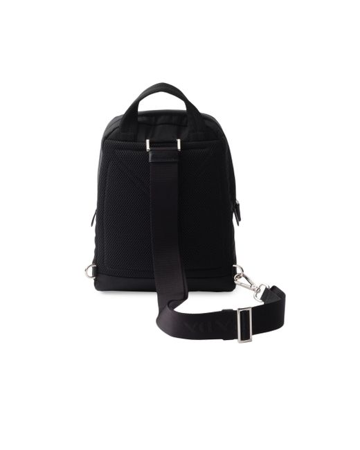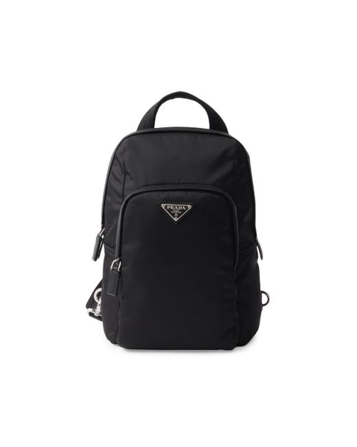 Padded woven nylon handle Adjustable nylon shoulder strap Maximum length 105 cm - Minimum lenght 60 cm - Maximum drop 55 cm - Minimum drop 30 cm Enameled metal triangle logo on the front Zipper closure One external zipper pocket Interior with one zipper pocket and one patch pocket Re-Nylon lining Imported 100% Recycled Polyamide - 100% Calf Leather - 100% Solventfree Resin Pu 20 W x 27 H x 8 L / 7.8'' x 10.6'' x 3.1''. Lsd Rtw - Prada Rtw > Prada > Saks Fifth Avenue > Barneys. Prada. Color: Black.