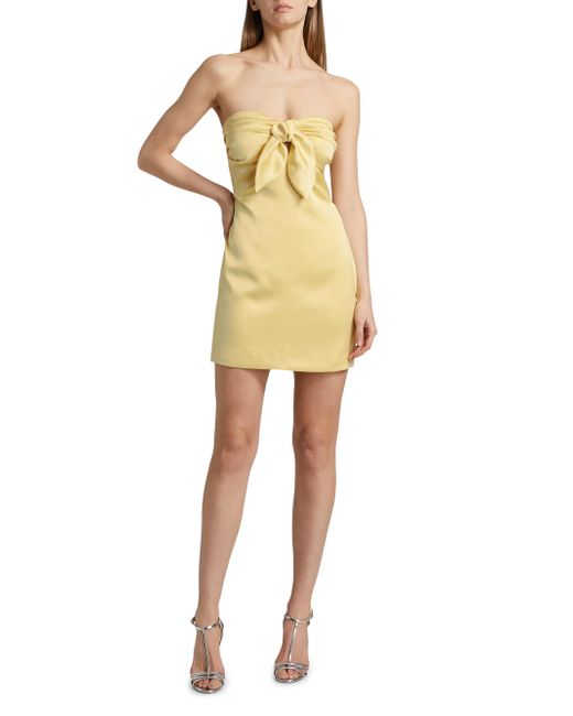 Ruched at the bodice, Ramy Brook's Orion minidress reveals a charming sweetheart neck with bow detail. This strapless style evokes elegance with a stunning satin finish. Sweetheart neck Strapless Back-zip 100% polyester Dry clean Imported SIZE & FIT About 34" from topline to hem Model measurements: 5'10" tall Model is wearing a US size 4. Dress Collections - Contemporary Evening > Ramy Brook > Saks Fifth Avenue > Barneys. Ramy Brook. Color: Butter. Size: 0.