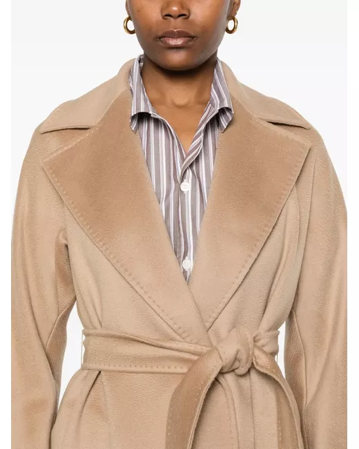 beige double-breasted button fastening tied waist two side slit pockets long sleeves